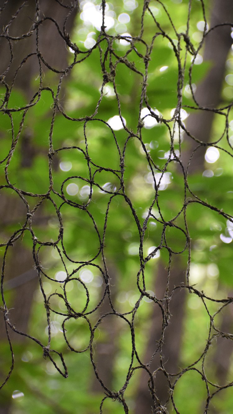 Invisible Connections (cells), 2024 | manipulated nettle fibres, installation in situ in the forest of „De Zavelput“, Halle, Belgium