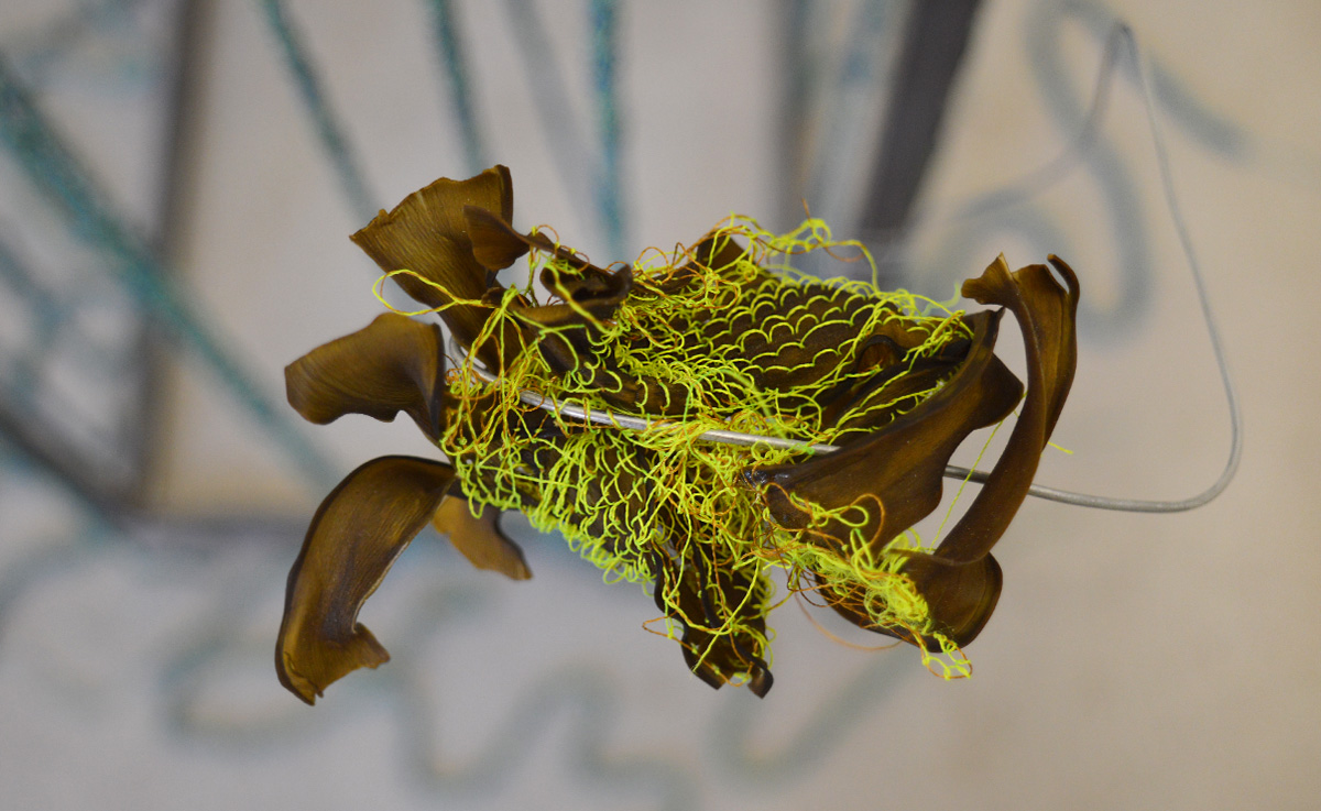 Detail Little Cosmic Garden, 2024 | machine embroidery on seaweed (Kombu), wire